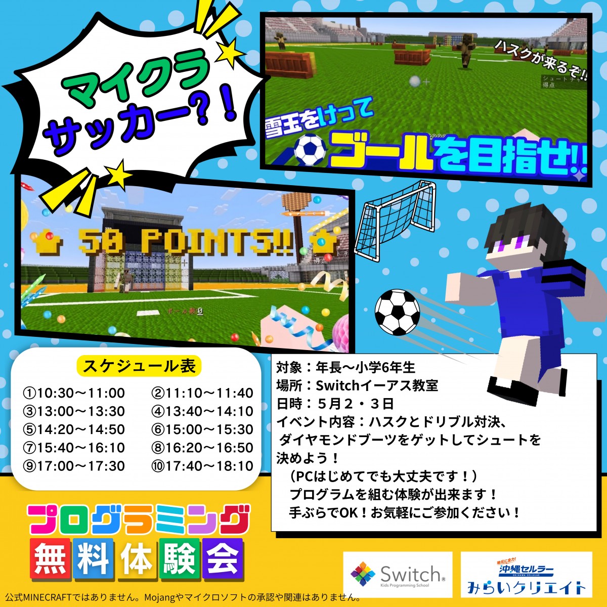 大好評だった「マイクラ×サッカー」が、ゴールデンウィークにイーアス沖縄豊崎に帰ってきます!
