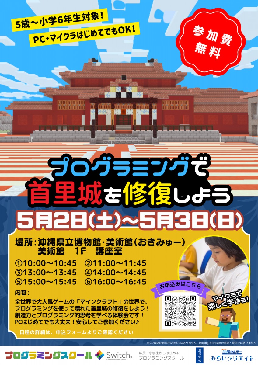 バラバラになってしまった首里城を、プログラミングを使って親子で一緒に修復してもらいます!